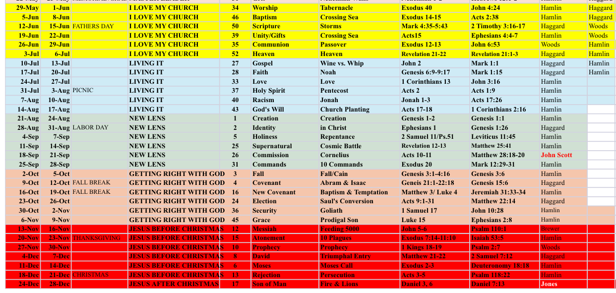 We aren't preaching the lessons in chronological order, rather we've group the lessons with sermon series which suit our church calendar for 2025. Click here for a list of sermon series with corresponding dates, themes and devotion page numbers. We will be preaching CORE 52 sermons each week in both adult and student worship services.